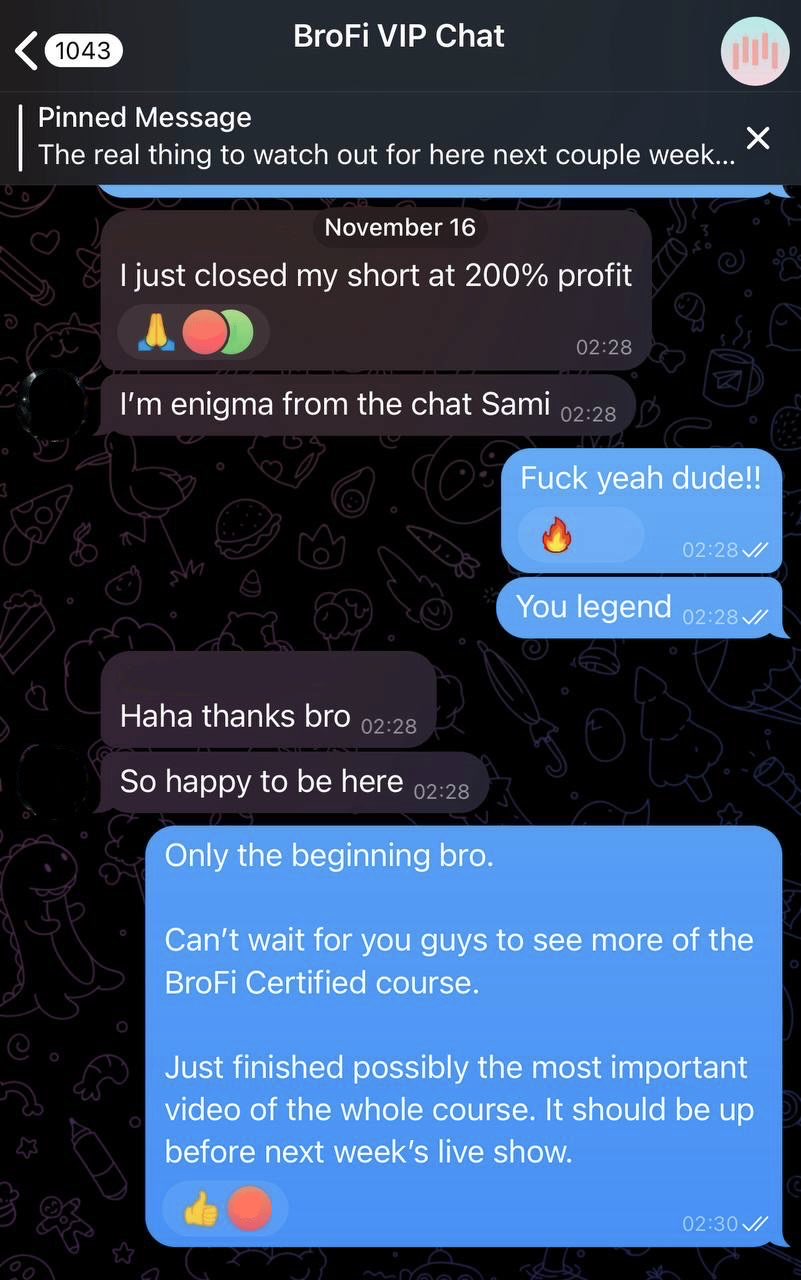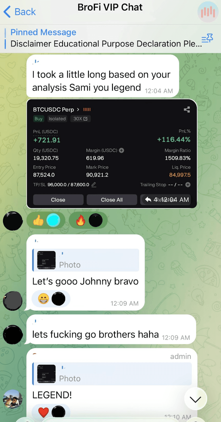 Build meaningful connections with other traders through our private group chat. Whether you’re sharing strategies, seeking advice, or celebrating wins, you’ll never trade alone.